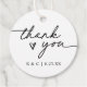 Écriture simple Favor Tags : Ces étiquettes rondes sont dotées d'un design "merci" propre et manuscrit avec un accent de coeur, parfait pour les mariages modernes, les douches ou les fêtes. Personnalisez avec des initiales et une date pour une touche de finition élégante.