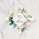 Cette belle aquarelle florale remercient faveur tag est spécialement conçu pour les mariages, douches, fêtes ou autres occasions. Tout le texte peut être personnalisé avec le texte souhaité en remplaçant l'exemple de texte figurant dans le modèle de conception. Le texte est encadré dans un cadre simple en forme de losange avec des roses roses blanches et roses rousses et des fleurs mélangées avec de la verdure. Le recto de l'étiquette a un message de remerciement et le verso a le nom de la mariée et du marié et la date du mariage.