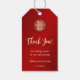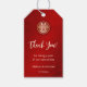 Ce faire-part de mariage chinois est orné d'un double symbole de bonheur doré sur un arrière - plan rouge rubis chatoyant. Merci mots dans un script manuscrit moderne ainsi qu'une coutume remercier texte et les noms de mariés et mariés.