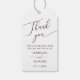 Balise de faveur de mariage minimaliste et simple avec texte de script moderne qui dit "merci" en haut.