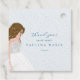 Cette belle "merci beaucoup de neige" Hivernal quinceanera merci étiquette de faveur pour les invités caractéristiques belle blanche chute de neige avec votre nom personnalisé et élégant bleu remerciement script sur un pastel bleu arrière - plan. anniversaire d'hiver mme quince est habillée d'une robe princesse blanche et argent fleurie. Un gentil merci aux invités du 15e anniversaire du pays des merveilles.