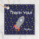 Merci! Navire de fusée rétro avec des balises de faveur motif étoile.