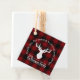 La conception du produit est composée d'une silhouette de cerf sur un motif classique à plis de buffle rouge et noir. Combinée à votre propre texte personnalisé, cette composition crée des étiquettes de faveur rustiques, modernes et uniques pour la réunion de famille ou toute autre fête spéciale.