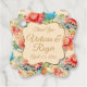 Plats victoriens avec motif continu fleuri coloré et dynamique, avec élégantes pivoines rouges, jaune turquoise, orange et vert botanique. Personnalisable de blanc donne cette remerciement vous faveur tags une ambiance vintage, tandis que la calligraphie de script or pour votre personnalisation le rend unique et sophistiqué.