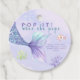"Une douce petite sirène est en route", soirée "Under the Sea" sur le thème de la petite fille baby shower. Aquarelle aux teintes violettes et bleues pastel, avec la queue joueuse de sirène, le poisson clown et les coraux.