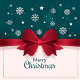 A festive scene unfolds with a gentle snowfall of shimmering snowflakes and twinkling stars against a rich teal background. A crafted red bow, perfectly centered, in the soft light. The words 'Merry Christmas' elegantly appear beneath the bow, enhancing the warm, joyful atmosphere.