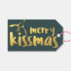 Étiquettes-cadeau Merry Kissmas Moderne Vert et Or Mistletoe