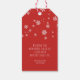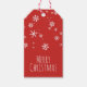 Balise cadeau de Noël Festive personnalisée. Belles flocons blancs sur un arrière - plan rouge et joyeux voeux de Noël. Personnalisez le tag avec votre texte et votre souhait personnel à l'arrière. Faites vos cadeaux de Noël pour votre famille et vos amis spéciaux avec cette étiquette cadeau de vacances personnalisée.