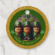 Miniature Leprechaun en 3D + "Bonne Saint Patrick" en cercle vert + carte postale vintage St Patrick comme arrière - plan avec "Merci !" en arrière. Conception sur étiquette ronde de faveur.