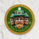 Miniature Leprechaun en 3D + "Bonne Saint Patrick" en cercle vert + carte postale vintage St Patrick comme arrière - plan avec "Merci !" en arrière. Conception sur étiquette ronde de faveur.