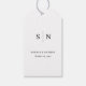 Ces étiquettes cadeaux de mariage élégantes et modernes présentent un design de texte simple en noir et blanc qui dégage un style minimaliste. Ajoutez vos initiales ou votre monogramme pour les rendre complètement vôtres.
