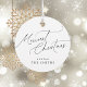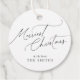 Personalized Christmas gift tags feature minimalist elegant merriest Christmas script in black and white, modern and simple.