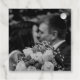 Design: High-contrast monochrome layout with a romantic botanical frame.