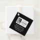Modern and minimal black and white square business gift tag design features your business logo and custom QR code on the back. Customize the wording with your preferred business information, such as the business name, address, phone number, or website. Black and white colors can be changed.