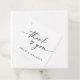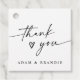 Black and White Favor Tags: Simple and stylish, these white handwritten wedding favor tags feature “thank you” in black script with a small heart accent and names below. The modern handwriting design makes them perfect for wedding thank-you tags or favors with a minimalist touch.