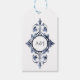 Monogramme cadre antique à privilégier tag avec un motif arlequin bleu marine grungy au verso.