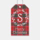 Étiquettes-cadeau Monogramme de feuillage à carreaux rouge et vert f