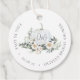 Tombez amoureux de ce design botanique éthéré pour les douches de mariée d'automne, les dîners de répétition, les mariages ou les fêtes de fiançailles. Le design élégant présente une citrouille à l'aquarelle blanche inscrite avec les initiales du couple et flanquée de fleurs blanches, de feuillage vert et de feuilles d'eucalyptus. Personnalisez avec un texte personnalisé dans une mise en page circulaire incurvée.