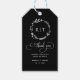 Faites de vos faveurs de mariage encore plus spéciales avec ces étiquettes cadeaux élégantes et personnalisables. Le tag présente un monogramme magnifiquement conçu et une calligraphie exquise qui épelle le "Merci" dans un arrière - plan de couleur noire. Avec des options de personnalisation complètes, vous pouvez ajouter vos noms, votre date de mariage ou tout message personnalisé pour les rendre vraiment uniques. Ces étiquettes sont la touche finale parfaite pour ajouter une touche de sophistication et de gratitude à vos faveurs de mariage. Que vous offriez de délicieuses gâteries ou des pâtisseries au coeur, ces étiquettes personnalisées laisseront une impression durable à vos invités. Montrez votre appréciation dans le style avec ces étiquettes cadeau de mariage personnalisables.