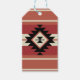 Aztec ethnic bohemian pattern with geometrical shapes in red, orange, grey and black colors on striped background
