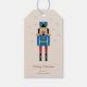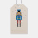 Une étiquette cadeau de Noël avec l'illustration d'un Casse-Noisette et quelques étoiles sur un arrière - plan brun clair. Parfait pour décorer vos cadeaux de Noël !