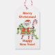 Cette étiquette-cadeau festive de vacances présente une mignonne image vintage d'un dessin animé du Père Noël habillé en rouge, vert et blanc, et tenant un sucre de canne. L'image est placée sur un arrière - plan blanc, avec votre texte personnalisé en rouge et vert en haut et en bas. Le dos de la balise a la même image Père Noël avec deux champs pour votre texte personnalisé. Les enfants vont adorer ! Assurez-vous de voir le papier d'emballage correspondant dans notre magasin.