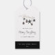 Nature moderne simpliste et douillette, Joyeux Noël étiquettes cadeaux. Branche aquarelle ornée de pinecones et d'ornements décoratifs étoiles, design typographique chic avec support motif plaid tendance.
