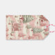 Belle aquarelle vintage Noël motif est teintes rose et vert mélange. Balise cadeau de Noël rose tendance.