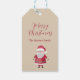 Des arcs-en-ciel blancs et verts blancs et blancs de Noël avec des flocons de neige entre et un arrière - plan tan plaid rendent ce papier brillant, coloré et festif! L'envers a un Père Noël et dit Joyeux Noël. Vous personnalisez avec le modèle facile à utiliser. Vos paquets auront l'air si joli sous l'arbre !