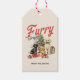 Venez à la fête de cette année avec des étiquettes PET VINTAGES avec une image rétro de trois chiens mignons sous les arbres de Noël parmi les cadeaux et les cadeaux et la citation fantaisiste 'FURRY AND BRIGHT' en police vintage rétro. Ajoutez une touche personnelle avec un message personnalisé sur le dos en utilisant le modèle. UTILISEZ LE POUR AMOUREUX DES ANIMAUX, CHIEN OU PROPRIÉTAIRE DE CHAT, CHAT DAME, CHAT OU CHIEN PERSONNE OU QUICONQUE AIME SON AMI FURIEUX