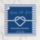 Étiquettes de faveur de mariage nautique moderne avec un nœud cœur blanc romantique affiché à l'intérieur d'une bordure bleu marine avec des accents de corde et des rayures. Un schéma de couleur classique bleu marine et blanc.