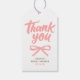 Étiquettes de remerciement avec nœud rose capricieux et lettrage manuscrit ludique — parfait pour n'importe quelle fête.