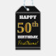 Étiquettes-cadeau Noir, Faux Gold 50e anniversaire + Nom personnalis
