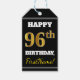 Étiquettes-cadeau Noir, Faux Gold 96e anniversaire + Nom personnalis