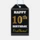 Étiquettes-cadeau Noir, Faux Or 10e anniversaire + Nom personnalisé