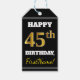 Étiquettes-cadeau Noir, Faux Or 45ème anniversaire + Nom personnalis