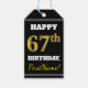 Étiquettes-cadeau Noir, Faux Or 67e anniversaire + Nom personnalisé