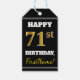 Étiquettes-cadeau Noir, Faux Or 71e anniversaire + Nom personnalisé