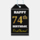 Étiquettes-cadeau Noir, Faux Or 74e anniversaire + Nom personnalisé