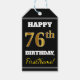 Étiquettes-cadeau Noir, Faux Or 76e anniversaire + Nom personnalisé