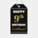 Étiquettes-cadeau Noir, Faux Or 9e anniversaire + Nom personnalisé