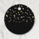 Cette étiquette de remerciement personnalisée moderne ajoutera des détails élégants à votre journée spéciale. Ce design présente des lettres dorées "Merci" et des confettis hexagones sur un arrière - plan noir. Des invitations à la retraite et des papeteries correspondantes sont disponibles dans ma boutique BaraBomDesign.