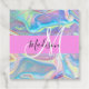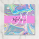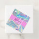 Nom monogramme irisé holographique de la pêche à la fille, violet et aqua et balises initiales de faveur. Votre nom personnalisé et votre monogramme sont écrits dans un élégant script écrit à la main avec un arrière - plan rose. Un cadeau d'anniversaire ou de Noël parfait !