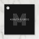 Étiquettes Cadeau Nom rétro moderne éditable monogramme noir et gris