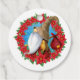 Marque de Noël avec un joli gnome dans une couronne de fleurs poinsettia. Oeuvre de : AMBillustrations©