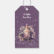 Argent gris et Nostalgic Joyeux Noël tag cadeau. Illustration du parfum exclusif entouré de fleurs violettes et de cristaux de neige dansants. L'arrière de la balise est design Free afin que vous puissiez écrire votre message ou à... et de... Double face. Bonne nostalgique, fête de Noël à la mode ancienne.