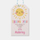 Notre petit soleil Anniversaire Merci Cadeau Tags mignonne notre petit soleil anniversaire merci tag avec un soleil mignon, texte multicolore et arc-en-ciel sur un arrière - plan rose. Ce symbole de remerciement d'anniversaire à thème pour le soleil est une façon mignonne de remercier les invités d'être venus à la fête d'anniversaire à thème pour la petite fille.