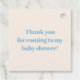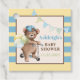 Ces étiquettes de cadeaux de baby shower super mignonnes ont un motif rayé en jaune et bleu avec une boîte de texte de couleur beige et marron sur le devant. Sur le devant gauche, il y a un ours en peluche marron qui fait du scooter, portant une casquette bleue tournée vers l'arrière. Trois ballons sont attachés au guidon du scooter et sont jaune, vert et bleu. Il y a également des fanions de coin dans le coin supérieur droit en bleu, jaune et vert. Le texte personnalisable indique "Baby Shower d'Ashleigh !" en lettres bleues et marron avec la date également imprimée en vert en bas. Le verso est de couleur beige avec des lettres bleues qui disent "Merci d'être venu à mon baby shower !". Si vous avez besoin d'aide ou si vous souhaitez d'autres articles assortis, veuillez envoyer votre demande par courriel à niteowlstudio@gmail.com et vérifiez votre dossier de pour