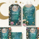 ÉTIQUETTES CADEAU BABY SHOWER AU-DESSUS DE LA LUNE | Ajoutez ces étiquettes cadeau à vos sacs cadeaux ou faveurs pour vos invités. Texte de typographie "Nous sommes au-dessus de la lune" et votre texte personnalisable sur un jardin éclairé par la lune, bordure de fleurs de style Art nouveau. Œuvre graphiquement conçue par l'artiste et designer sous licence internationale, Audrey Jeanne Roberts ©