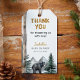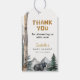 Ajoutez une touche finale à vos cadeaux de baby shower avec ces étiquettes à thème aventure en forêt. Avec un ours noir, des bouleaux et des montagnes à l'aquarelle, le design se coordonne parfaitement avec l'invitation et la décoration de fête assorties. Personnalisez avec votre nom et date pour une étiquette souvenir que les invités adoreront.